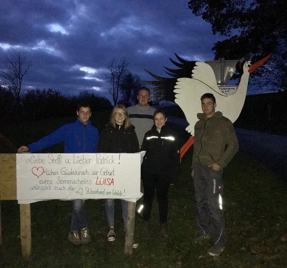 Vor ca. 1,5 Wochen stellten wir unserer ehemaligen Schriftführerin und langjährigen LJ-Mitglied Stefanie den Storch auf, denn wie es nicht besser passen konnte ist bei unserer Jahreshauptversammlung die kleine Luisa (zukünftiges LJ-Mitglied) auf die Welt gekommen. Wir wünschen euch Alles Gute Steffi und Patrick mit eurer kleinen Maus! Auch wir, die Landjugend helfen gerne mit, damit unser Dorf schön und gut erhalten bleibt!